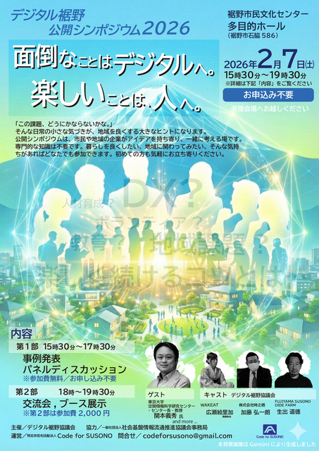 デジタル裾野協議会では協議会の活動や輪の活動について、皆様にお伝えする場として、昨年につづき今年も公開シンポジウムを開催することとなりました。